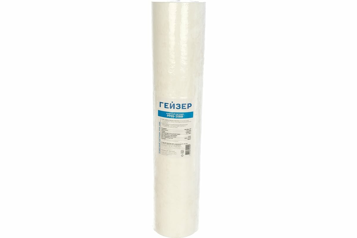 Картридж полипропиленовый Гейзер PP 0,5-20BB, очищает воду от ржавчины, грязи, песка и других нерастворимых частиц размером более 0,5 мкм, 28247