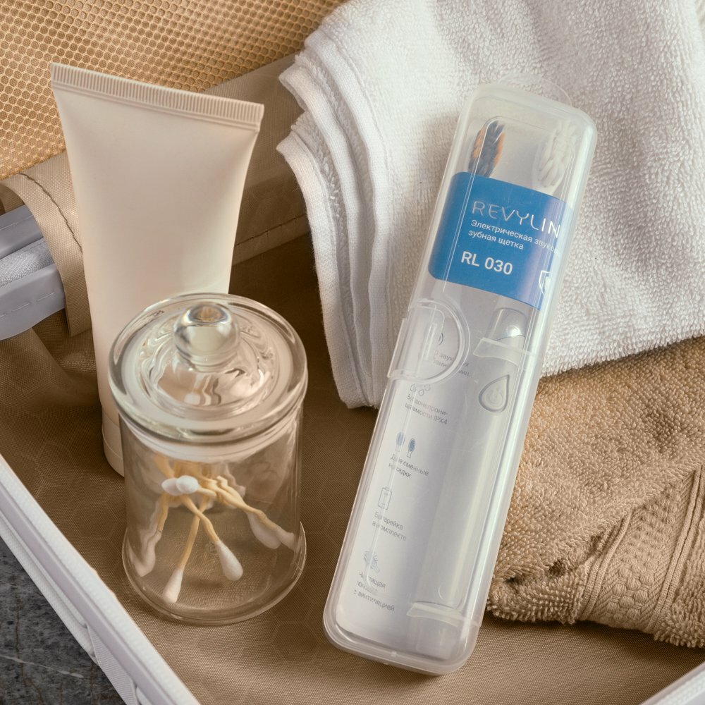 Электрическая звуковая зубная щётка Revyline RL 030, бежевая, 20000 колебаний щетинок в минуту, 2 насадки с вентиляцией, дорожный футляр, 2 года гарантии ,Ревилайн