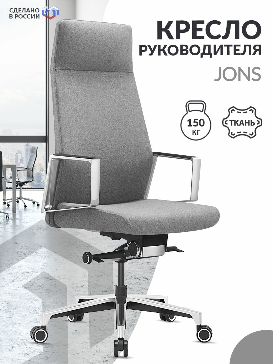 Кресло руководителя JONS серый ткань крестов. алюминий / Компьютерное кресло для директора начальника, менеджера