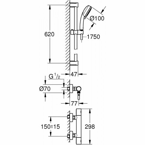 Термостат для душа Grohe 34768000 Grohtherm 800 Cosmopolitan, внешний монтаж, хром + Душевой гарнитур Tempesta Cosmopolitan, 2 режима струи, душевая штанга