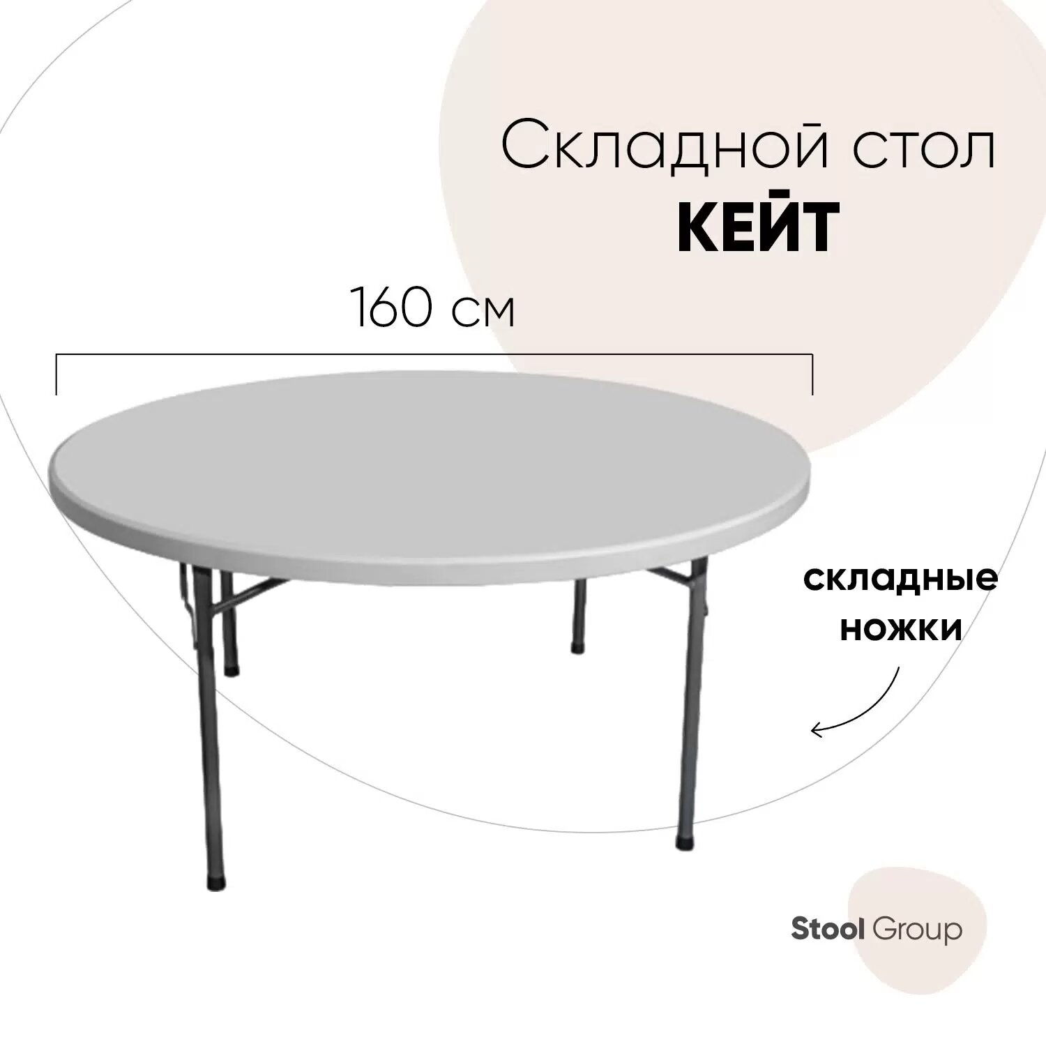 Стол круглый складной пластиковый STOOL GROUP Кейт 160, стальной каркас, полиэтилен высокой плотности HDPE