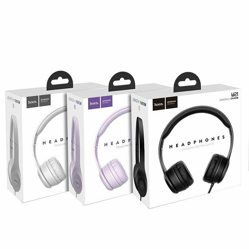 Наушники Hoco W21, проводные, накладные, с микрофоном, Jack 3.5 мм, 1.2 м, серые