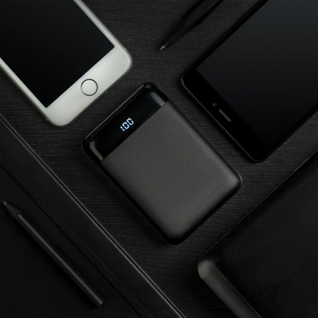 Внешний аккумулятор Uniscend Full Feel 10000 мАч с индикатором, черный, 8,9x6,3x2,1 см; упаковка: 14x8x2,8 см, пластик