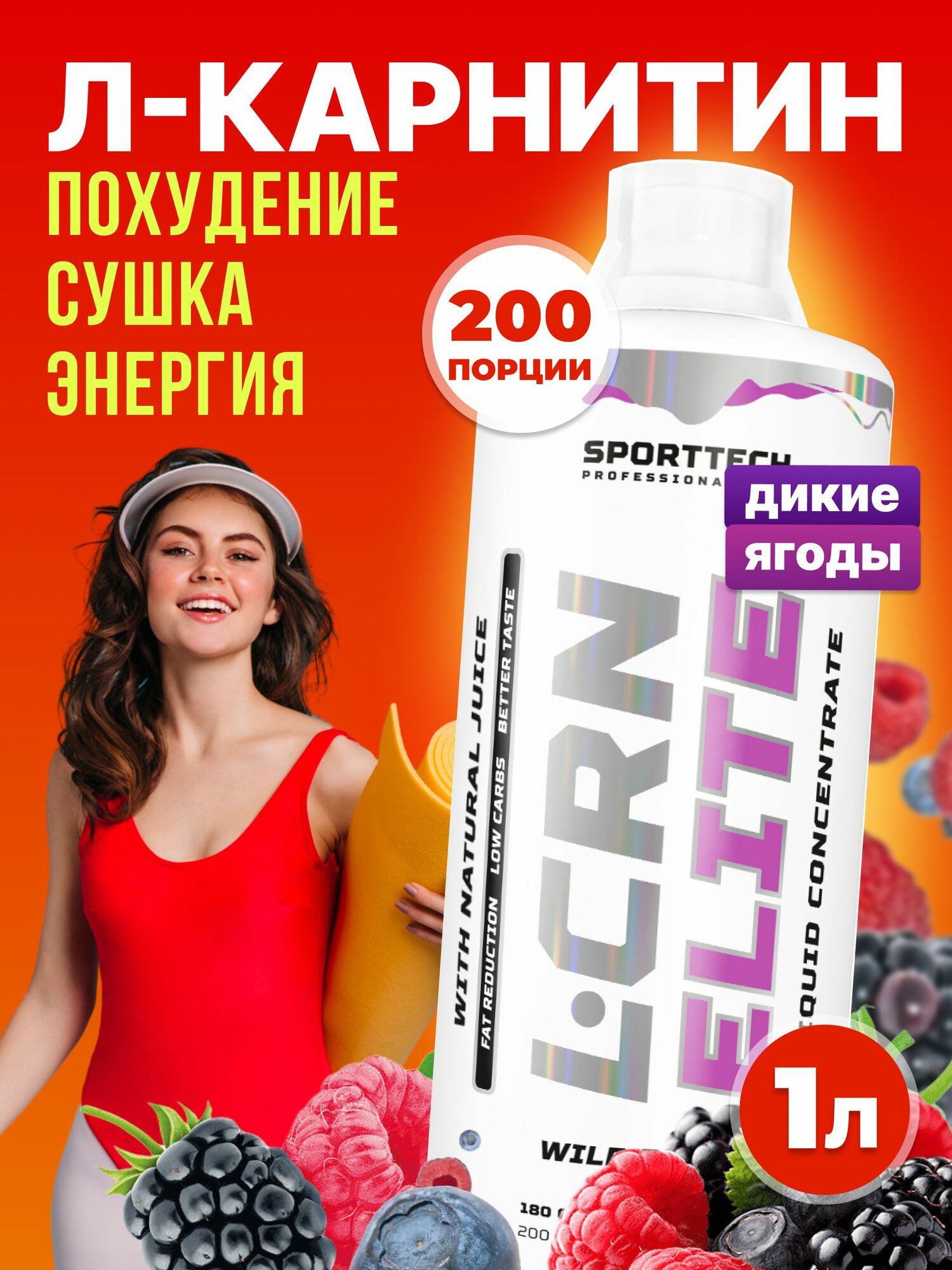 Купить L- карнитин SPORTTECH L-CRN Elite, лесные ягоды, 1000 мл.
