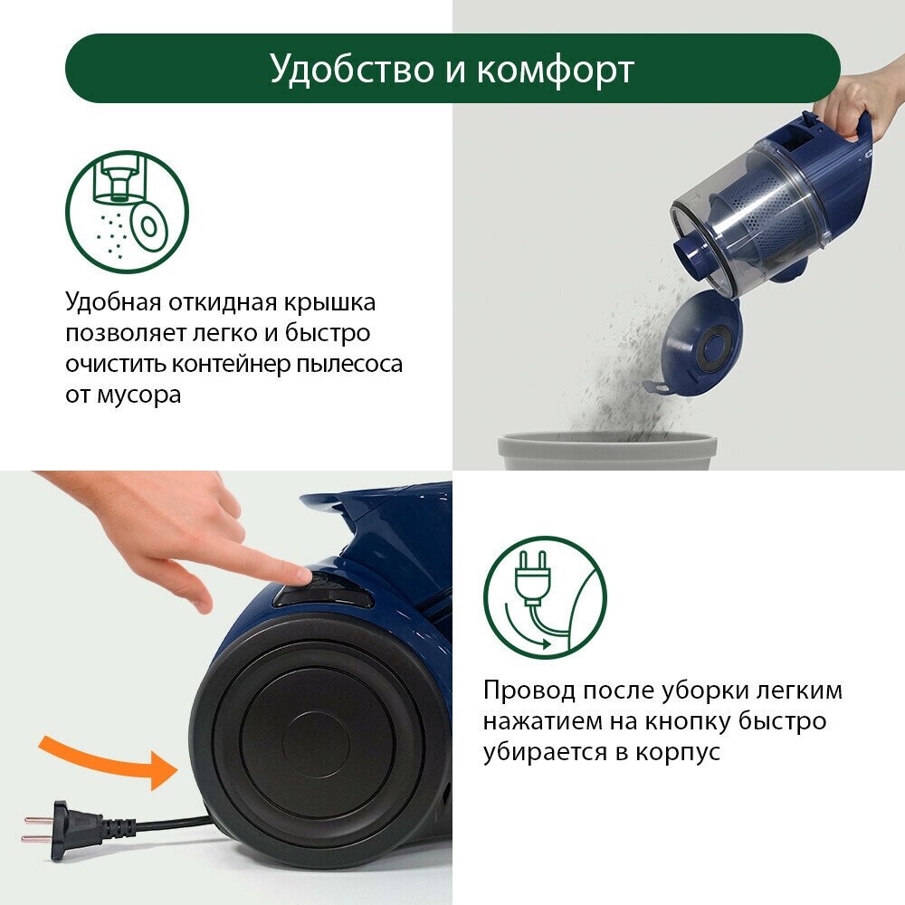 | Плюсы: | компактный, лёгкий, с контейнером, система "циклон" |