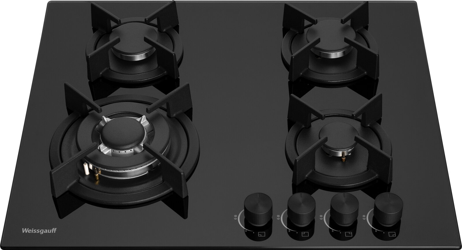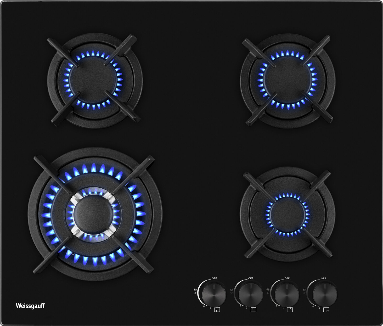 Варочная панель Weissgauff HGG 640 BGB WOK-конфорка, 3 года гарантии, автоматический электроподжиг, Рукоятки Hi-Tech, газ-контроль