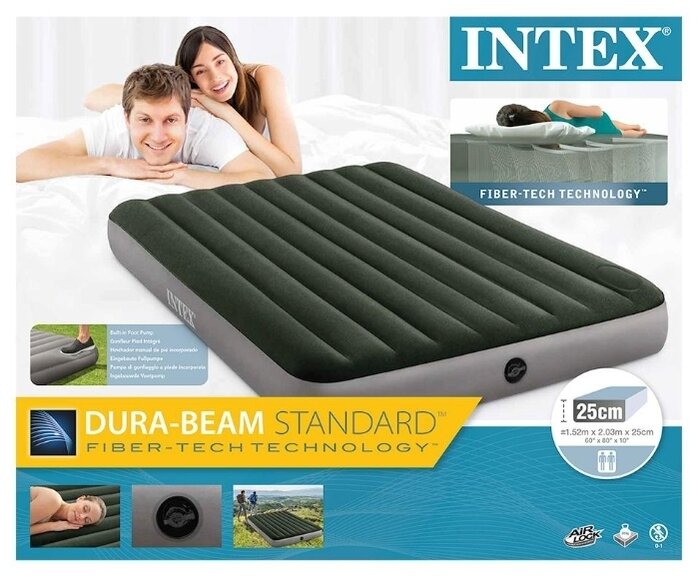 Матрас надувной DURA-BEAM Queen, 152 х 203 х 25 см, с встроенным ножным насосом, 64763 INTEX INTEX 4 .