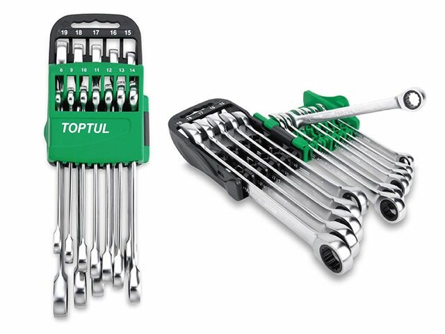 Набор ключей комбинированных с трещоткой 8-19 мм 9 предметов TOPTUL (GSCQ0901)