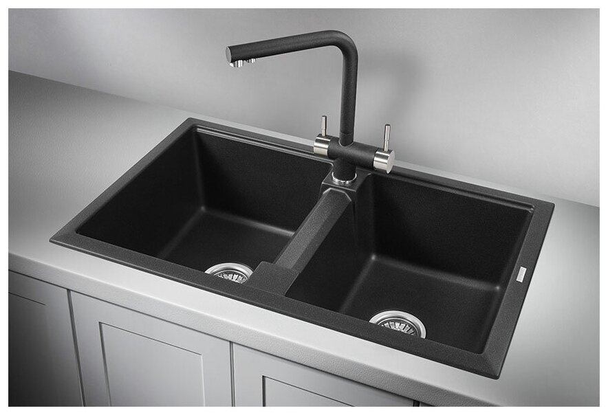 Кухонная мойка кварцевая Granula GR-8101 двухчашевая, врезная, чаша 335x420, 335x428, цвет черный (8101bl)