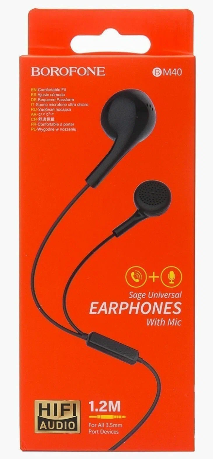 Купить Проводные наушники с микрофоном вкладыши Borofone BM40 Sage, Jack 3,5, из пластика, цвет черный, 1шт