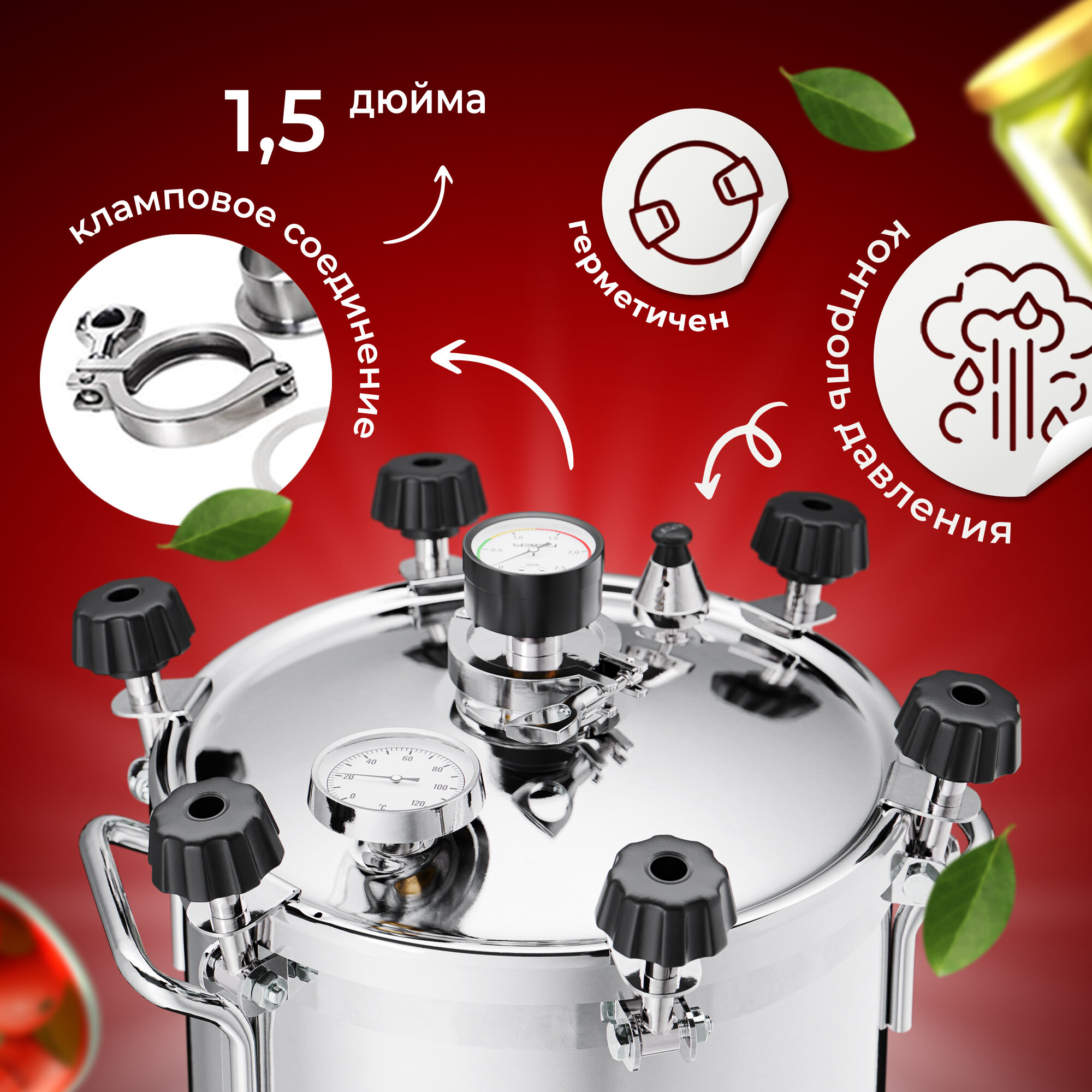 Автоклав-стерилизатор консерватор 2в1, 14л нерж, манометр, термометр