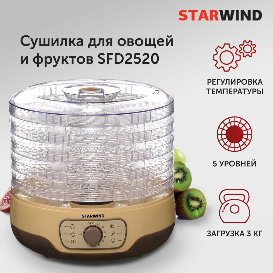Сушилка для овощей и фруктов StarWind SFD2520, бежевый, 5 поддонов