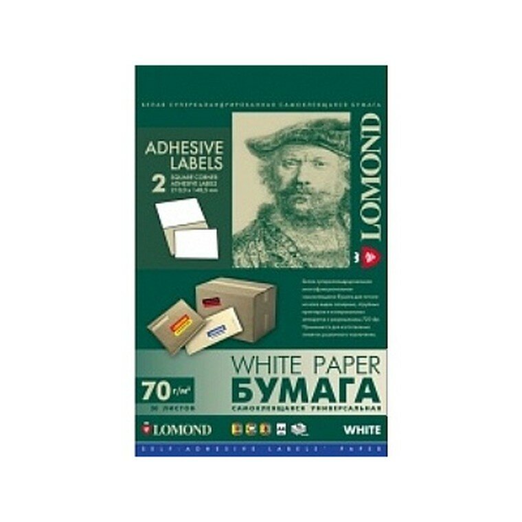 Бумага самоклеящаяся А4 50л. Lomond, белая, 02 фр. (210*148,5), 70г/м2 ( Артикул 129369 )