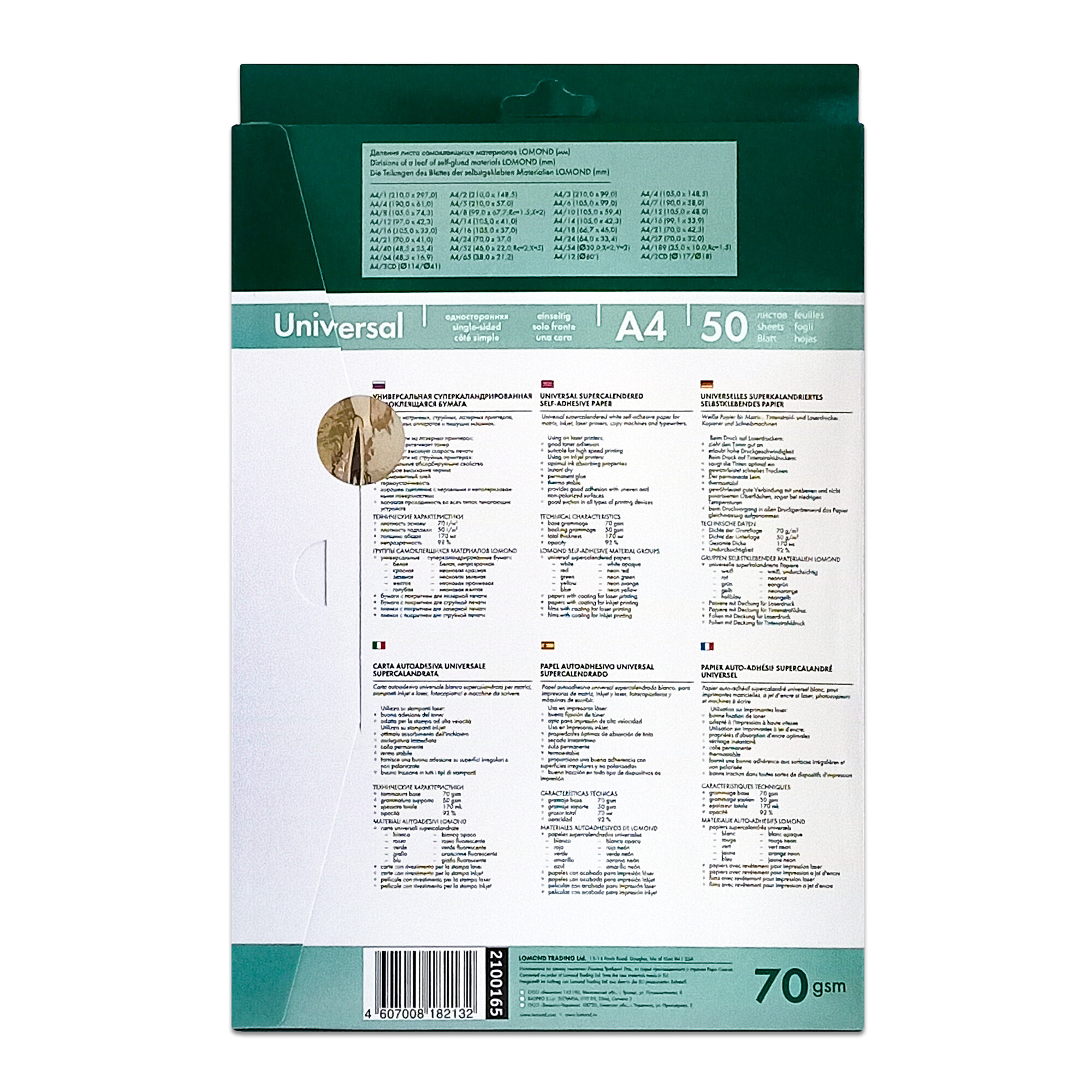Бумага A4 Lomond Самоклеящаяся универсальная 24 деления (70x37) 70г/м2 50л (2100165) .