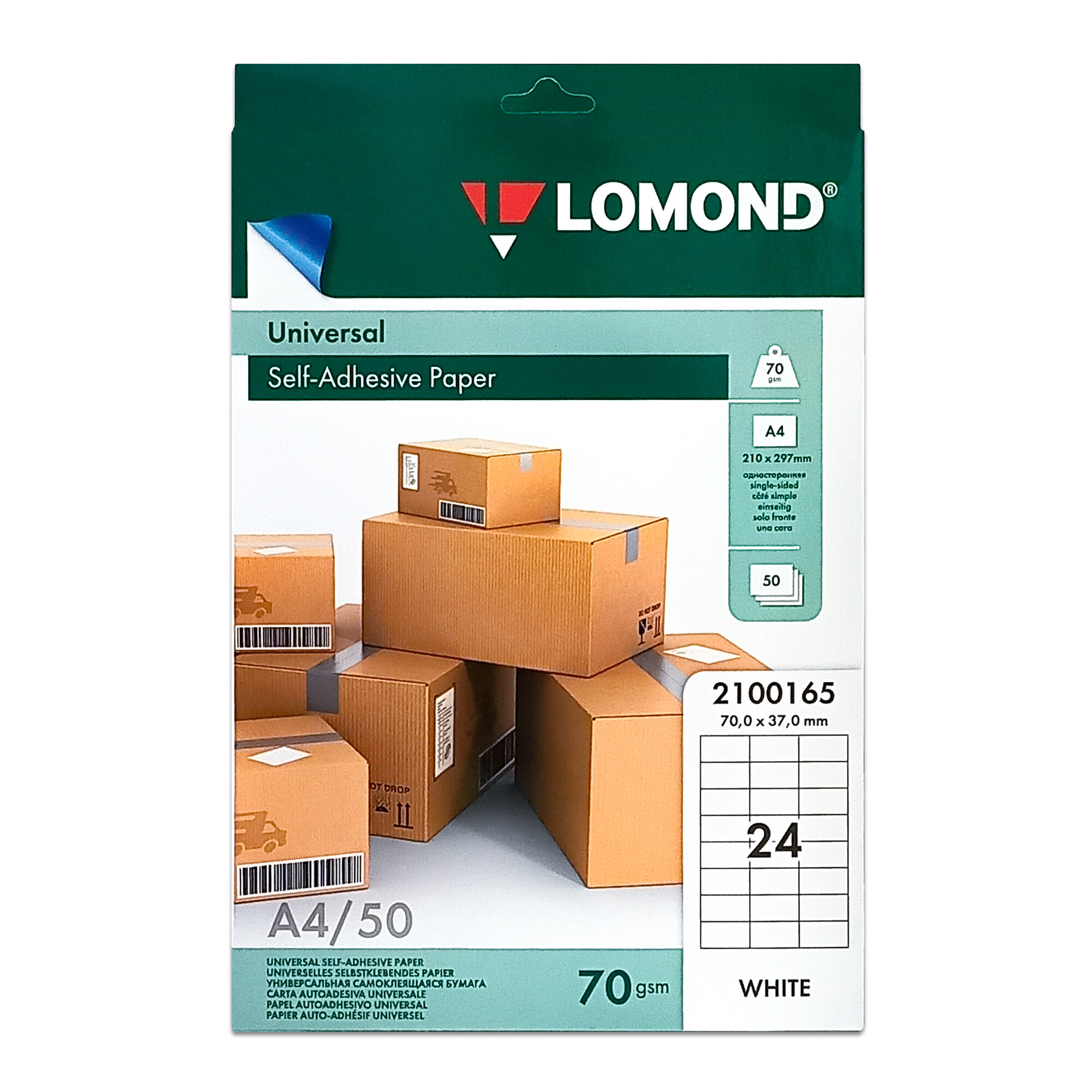 Бумага Lomond 2100165 Самоклеящаяся бумага LOMOND универсальная для этикеток, A4, 24 делен. (70 x 37 мм), 70 г/м2, 50 листов