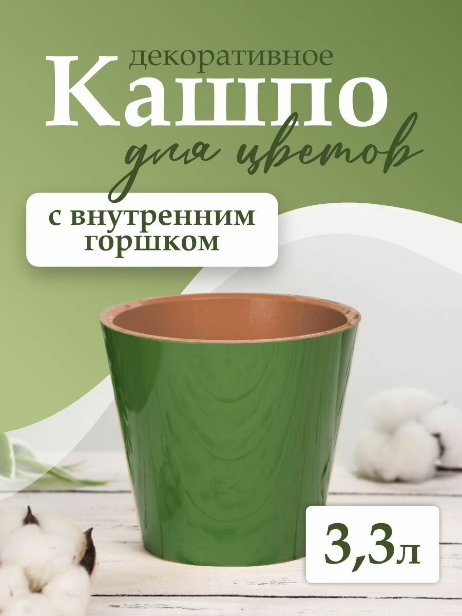 Горшок для цветов London D=160мм (1,6л) со вставкой, Олива, пластик ING6204ОЛ InGreen