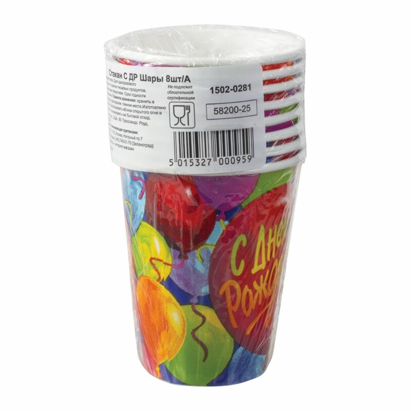 Стакан С Днем Рождения Шары 1502-0281 8шт., 257мл. интересное: