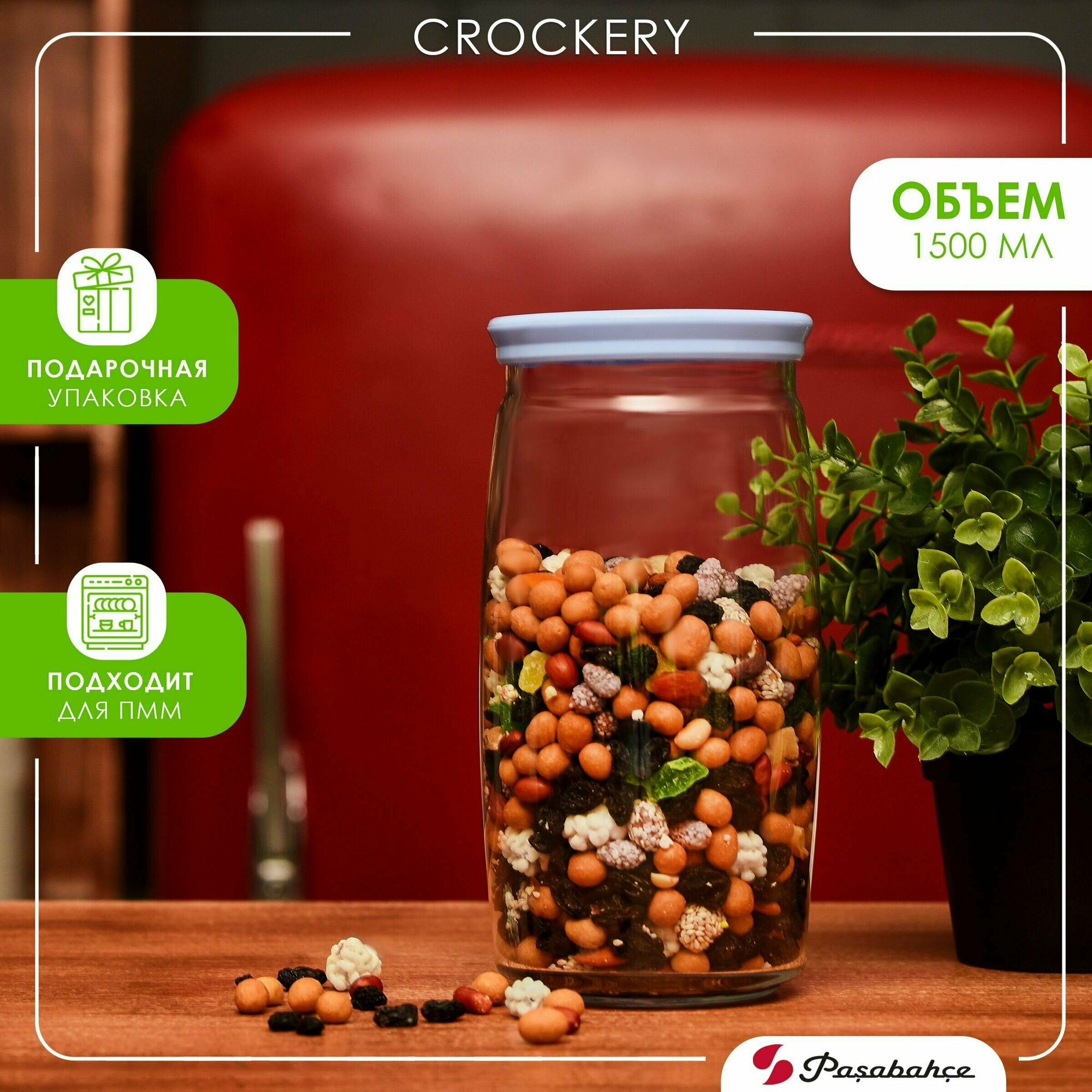 Pasabahce Банка для хранения Cesni 1500 мл, 1500 мл, 9.4x20.5 см, 11x11x20.5 см