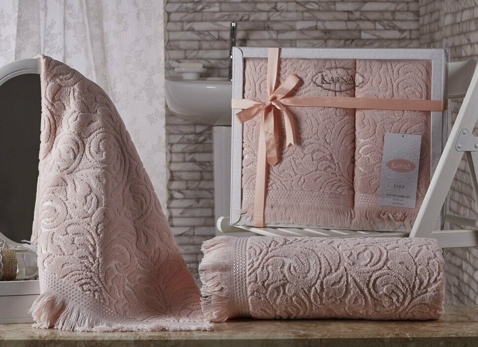 Комплект махровых полотенец "KARNA" ESRA 50х90 и 70х140 см - Розовый