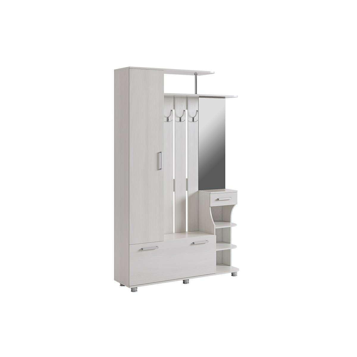 Узкая прихожая "Барселона-1" с зеркалом, 130*35*211 см., цвет Белый рамух, Mebelson