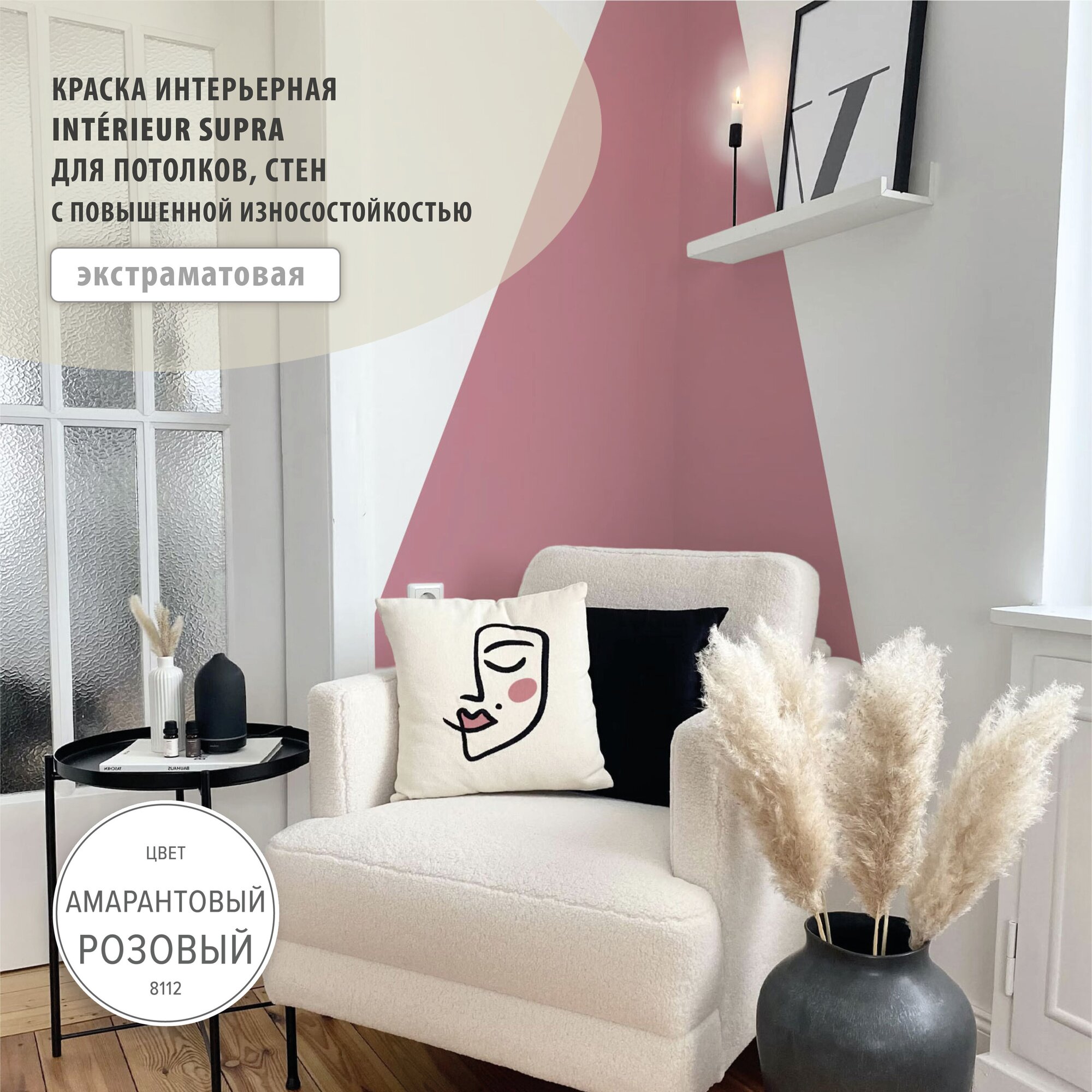 Краска водная , моющаяся, износостойкая для стен, потолков, офисов, гостиных, гардеробных INTERIEUR SUPRA 2.25л цвет Темно розовый 8112