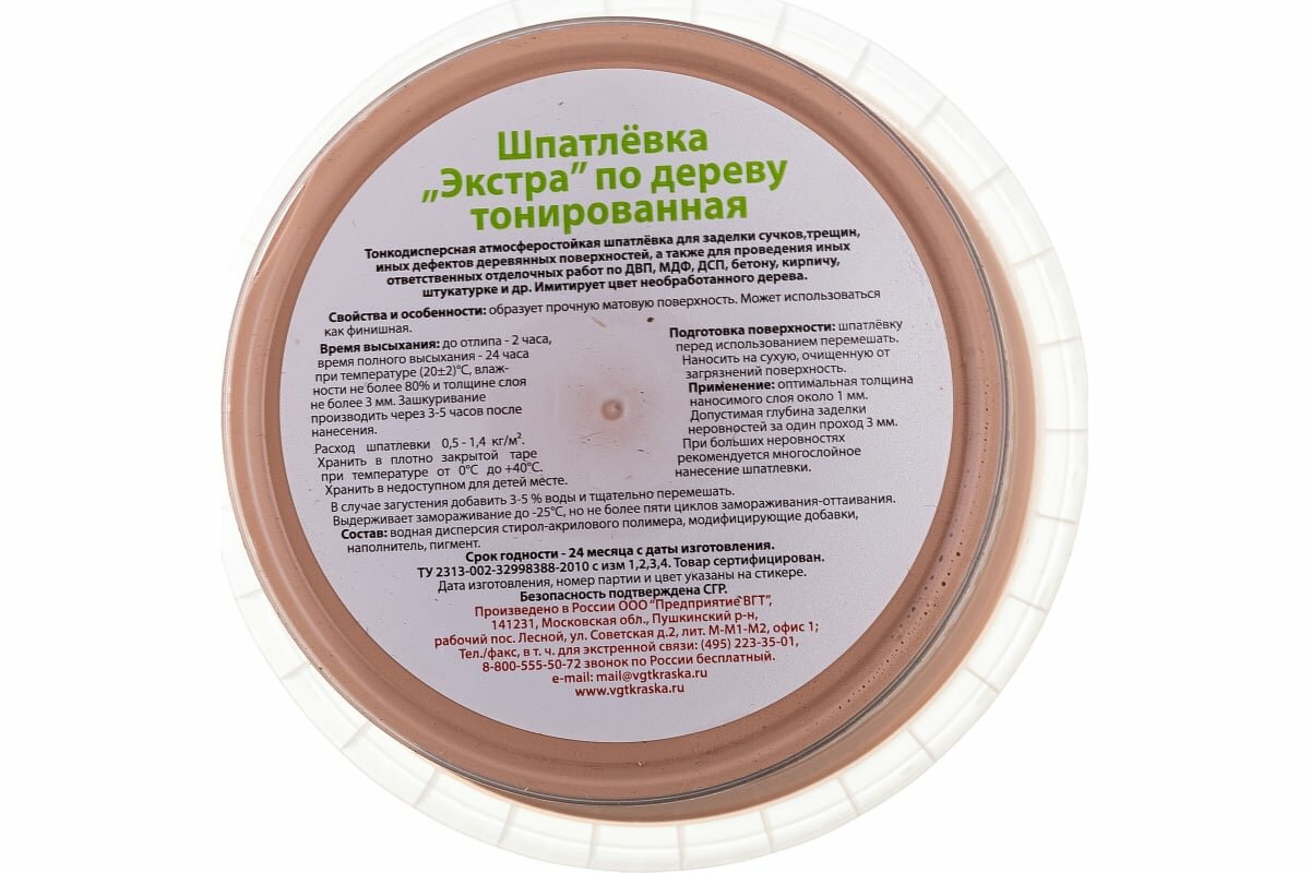 Шпатлевка по Дереву VGT Экстра 1кг Берёза Акриловая, Универсальная / ВГТ Экстра.