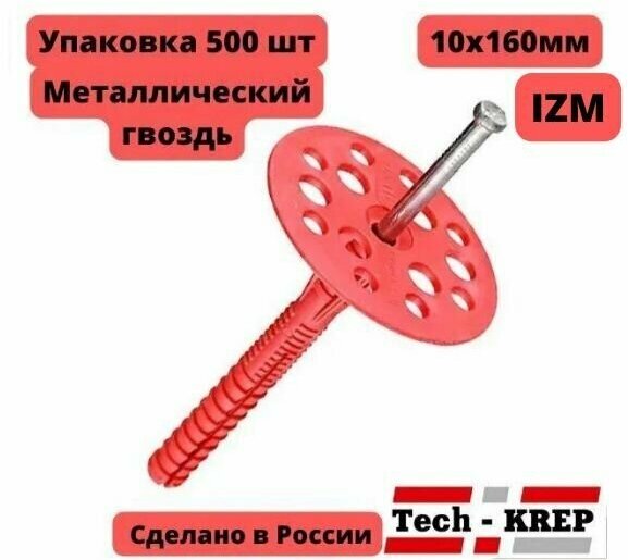 Tech-Krep Дюбель для теплоизоляции с мет. гвоздём IZM 10x160 500 шт - накл. 124880 интересное: