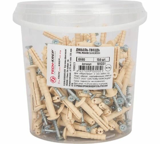 Tech-Krep Дюбель-гвоздь 6L40 гриб.манжета нейлон 150 шт - ведро 101331