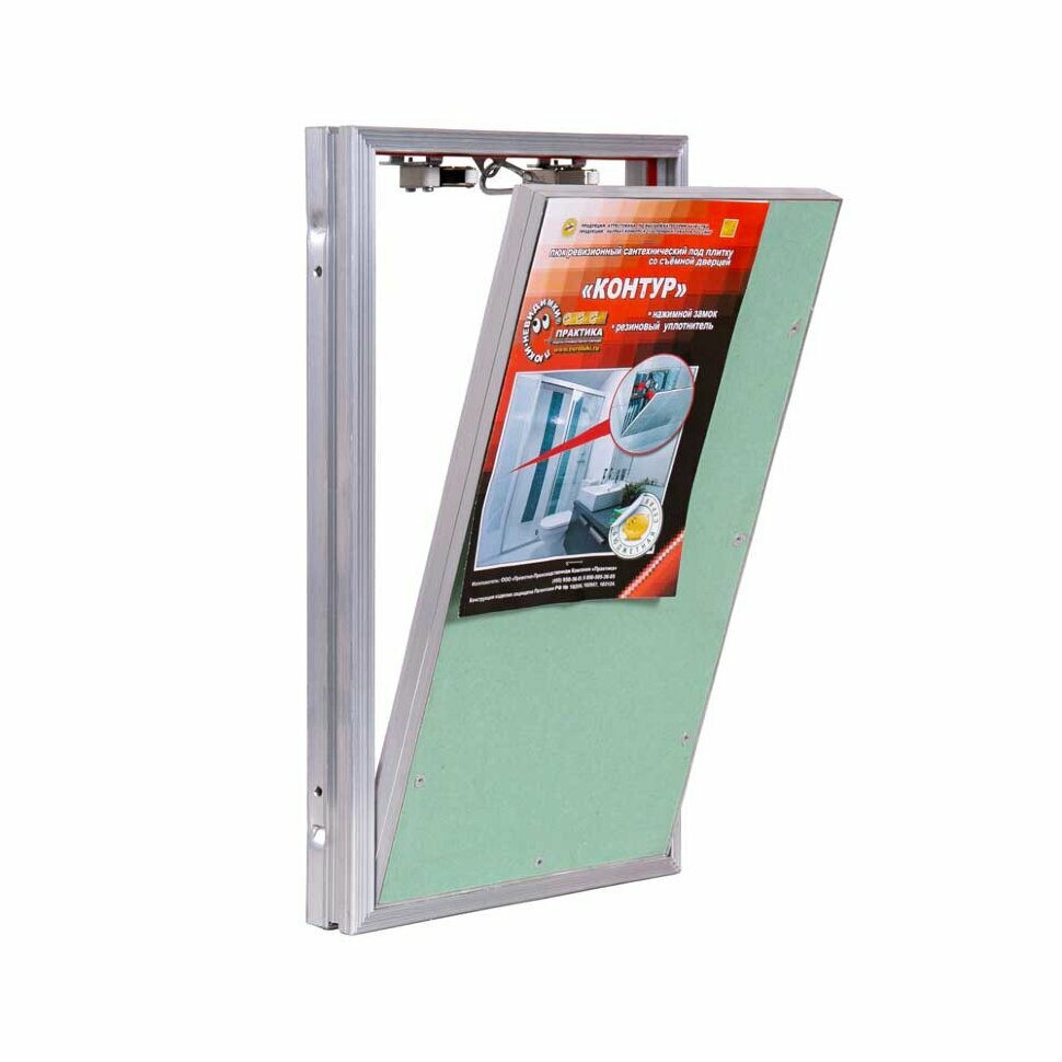 Ревизионный люк Контур 20-30 настенный под плитку ПРАКТИКА, серебристый/зеленый