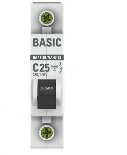 СохранитьВыключатель автоматический однополюсный ВА 47-29 25А C 4,5кА Basic | код. mcb4729-1-25C | EKF (3шт.в упак.) интересное: