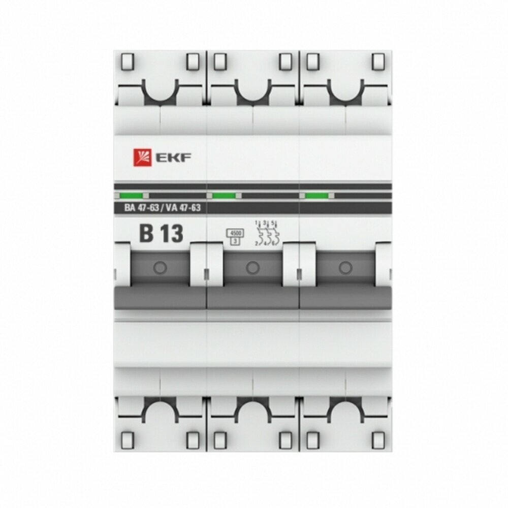 Автоматический выключатель EKF PROxima ВА 47-63 3Р 13А тип B 4,5 кА 660 В на DIN-рейку (mcb4763-3-13B-pro)