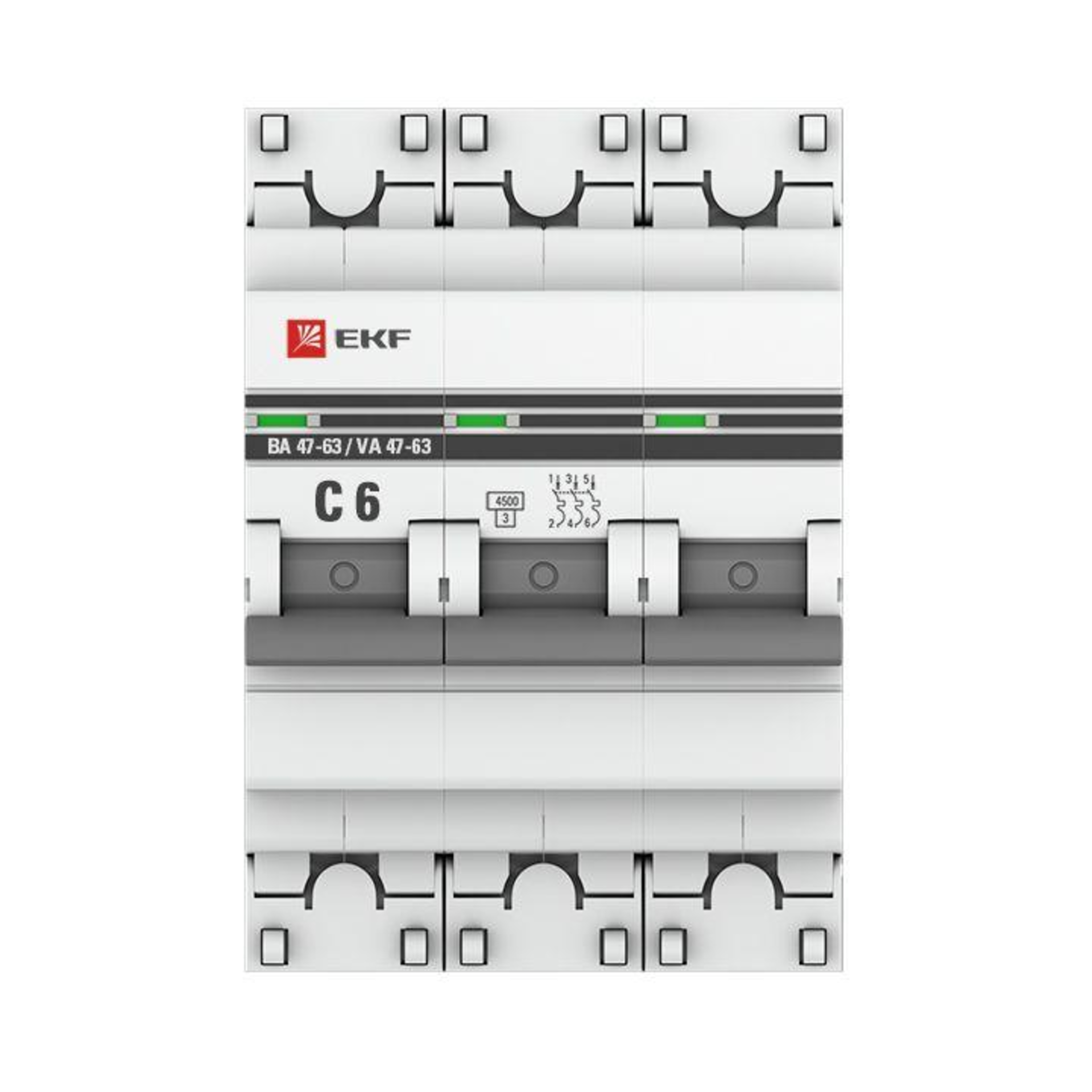 Купить Модульный автоматический выключатель ВА 47-63 PROxima 3 полюса, 6А, х-ка C. mcb4763-3-06C-pro EKF