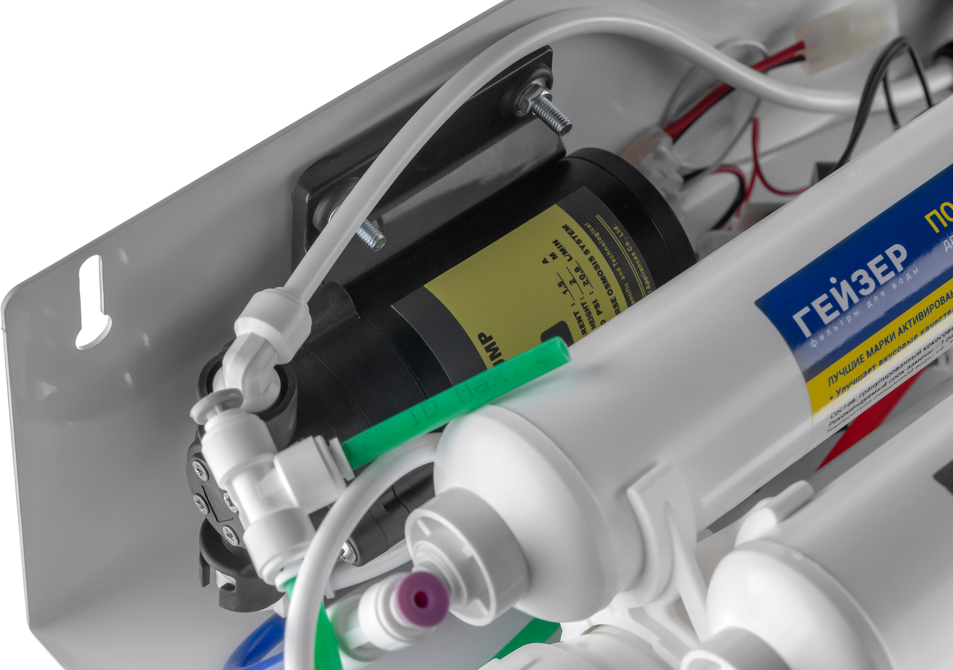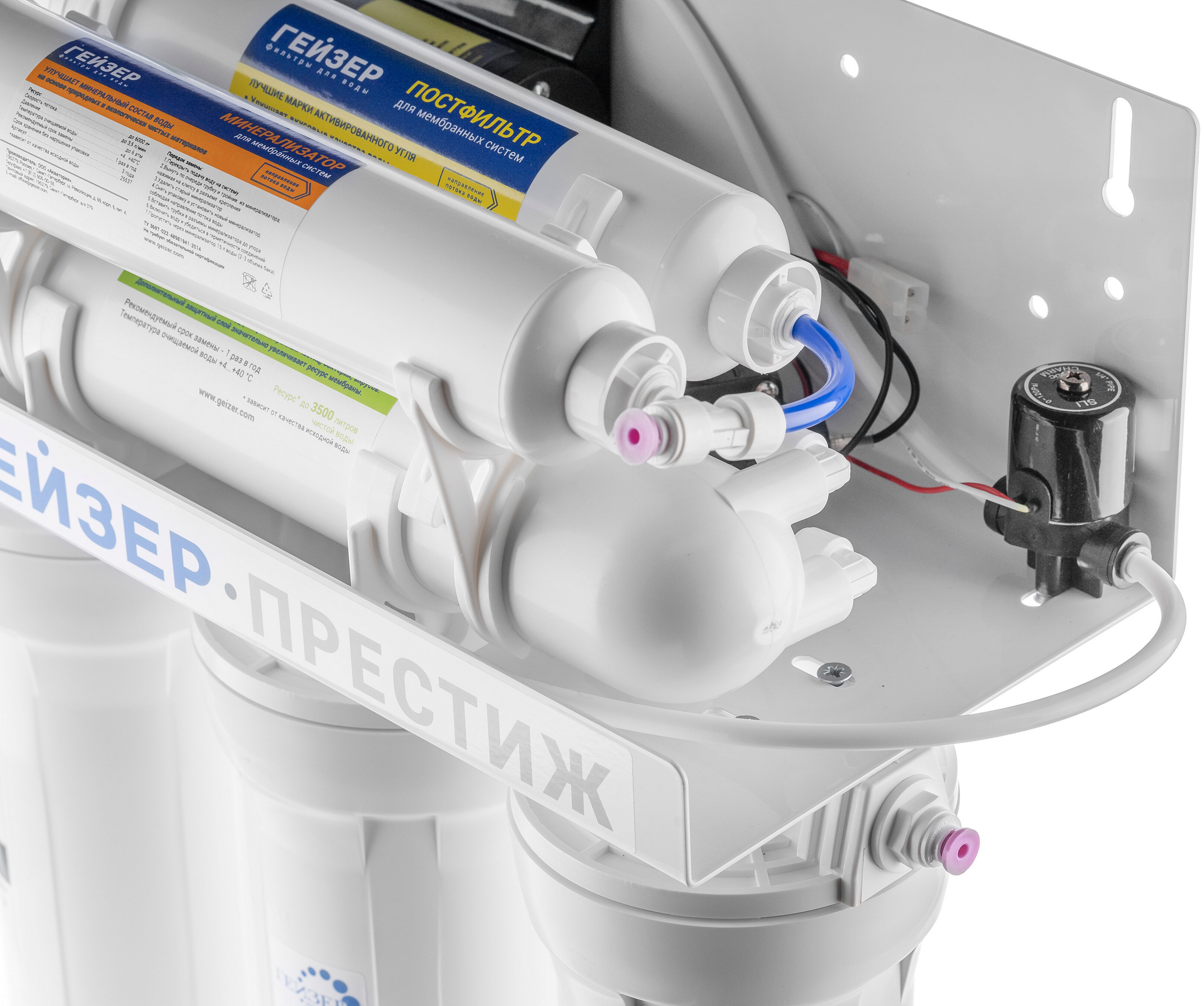 Обратный осмос фильтр для воды Гейзер Престиж ПМ, для квартир с низким магистральным давлением, минерализатор «Вита» на основе природных материалов, 20019