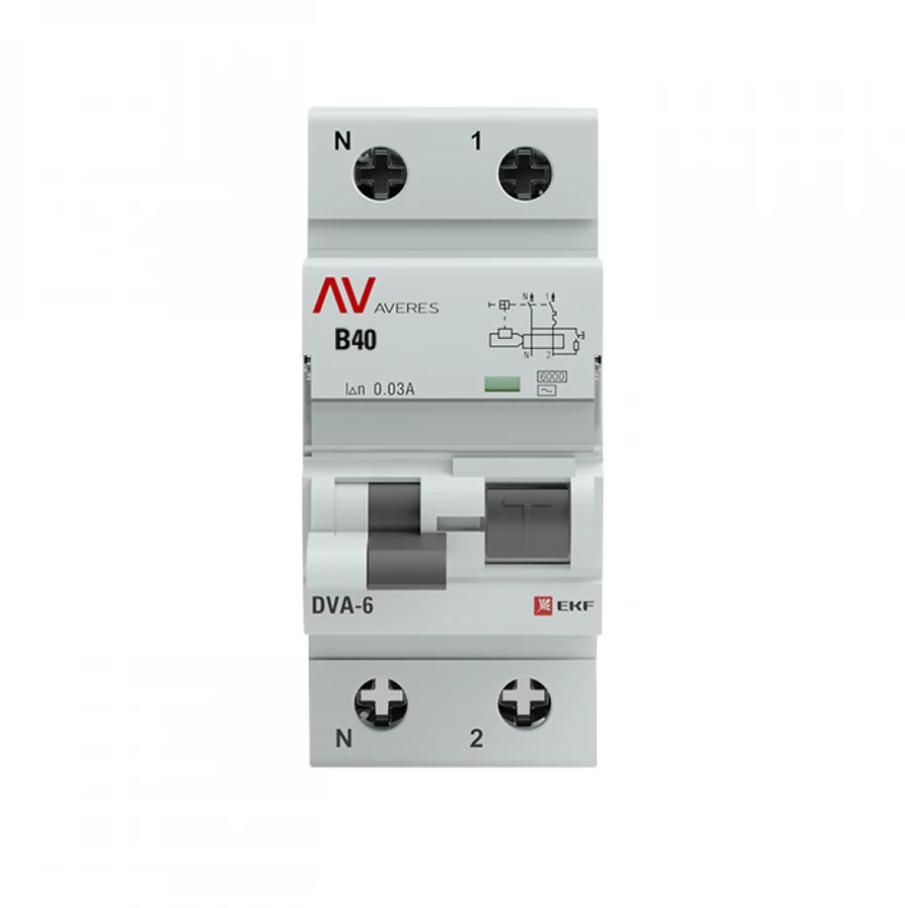 Автомат дифференциальный DVA-6 1P+N 40А (C) 30мА (AC) 6кА AVERES (rcbo6-1pn-40C-30-ac-av) EKF RCBO6-1PN-40C-30-AC-AV (1 шт.)