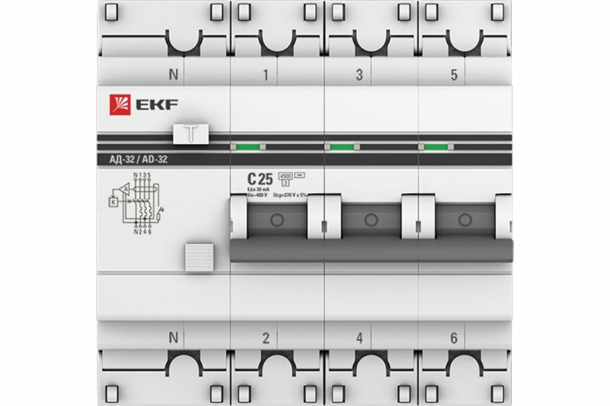 EKF PROxima АД-32 Диф. Автомат (C) 3P+N 25А/30мА тип АС 4,5кА , электронный