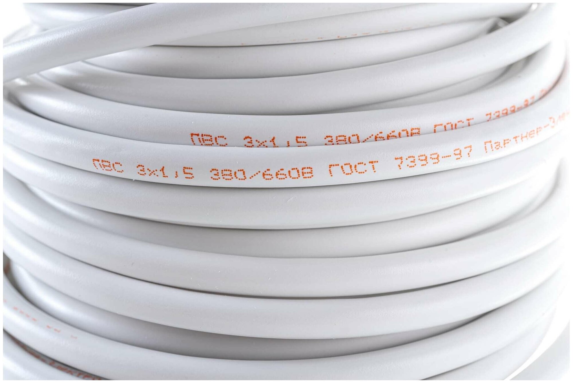 Провод бытовой ПВС 3х1.5 кв. мм партнер электро ГОСТ белый 100 м