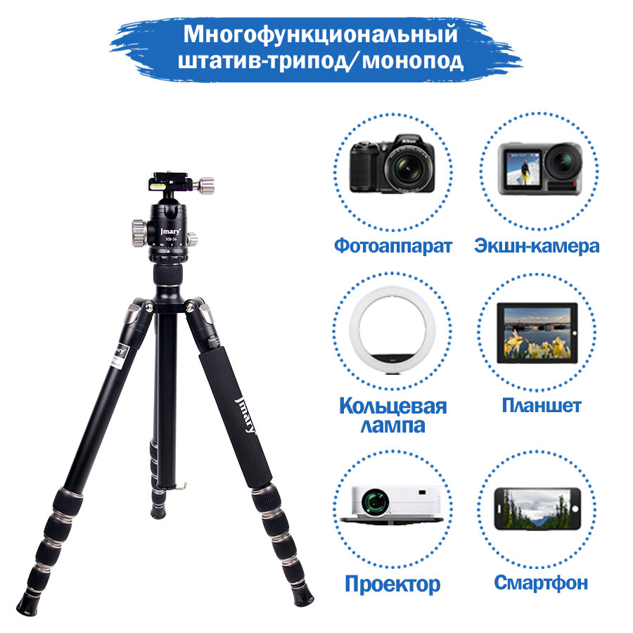 Трипод-штатив JMARY KT255+NB36, напольный для фото/видеокамер, 410-1575мм, черный интересное:
