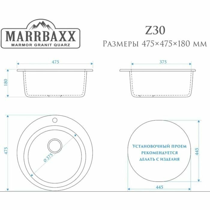 Мойка для кухни MARRBAXX из камня, Zett lab.30/Q5, d 475 мм, матовая, песочная