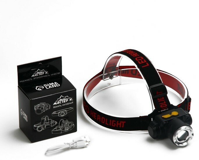 Фонарь налобный, аккумуляторный "Мастер К", Xpe, 5 Вт, 140 лм, 2 режима, от сети, 7x6 см Мастер К. 4 интересное: