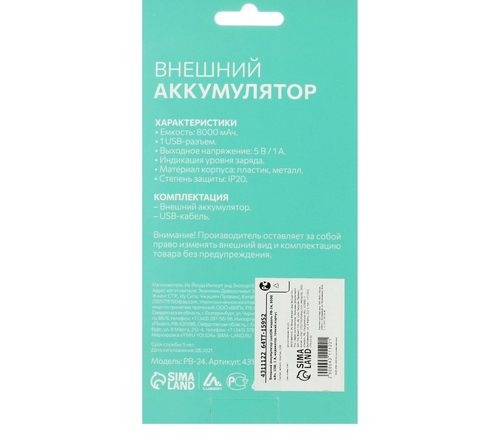 Ниже Вы можете прочитать отзывы на Внешний аккумулятор Luazon Home PB-24, 8000 мАч, 1 usb-пор 1 А, индикатор, металл, серый, ознакомится с подробными характеристиками, посмотреть интересные обзоры и фотографии на Внешний аккумулятор Luazon Home PB-24, 8000 мАч, 1 usb-пор 1 А, индикатор, металл, серый.