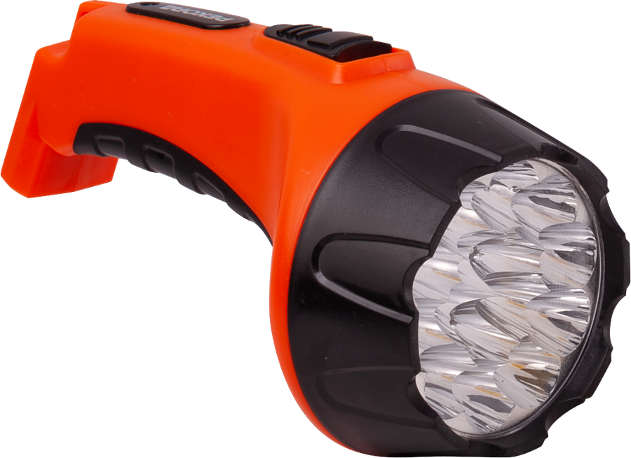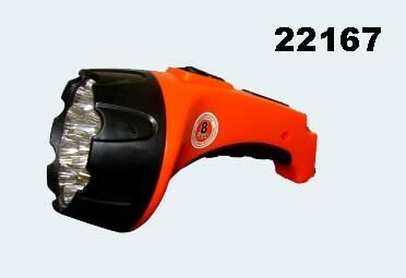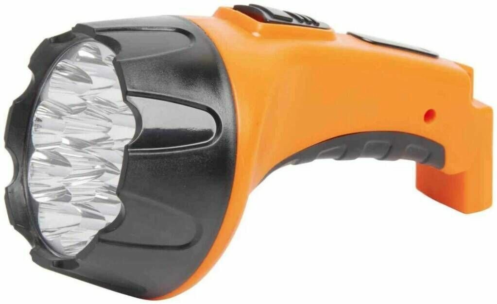 Фонарь ручной аккумуляторный Рекорд оранжевый PM-0115 , выдвижная вилка для зарядки, 15 светодиодов, 8 часов работы, 75Лм, дальность 8м