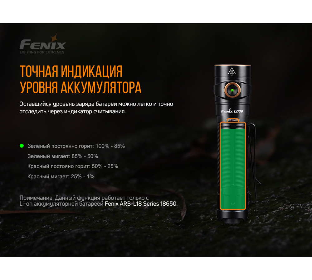 Fenix LD30 с АКБ в комплекте (1600 лм, 18650)
