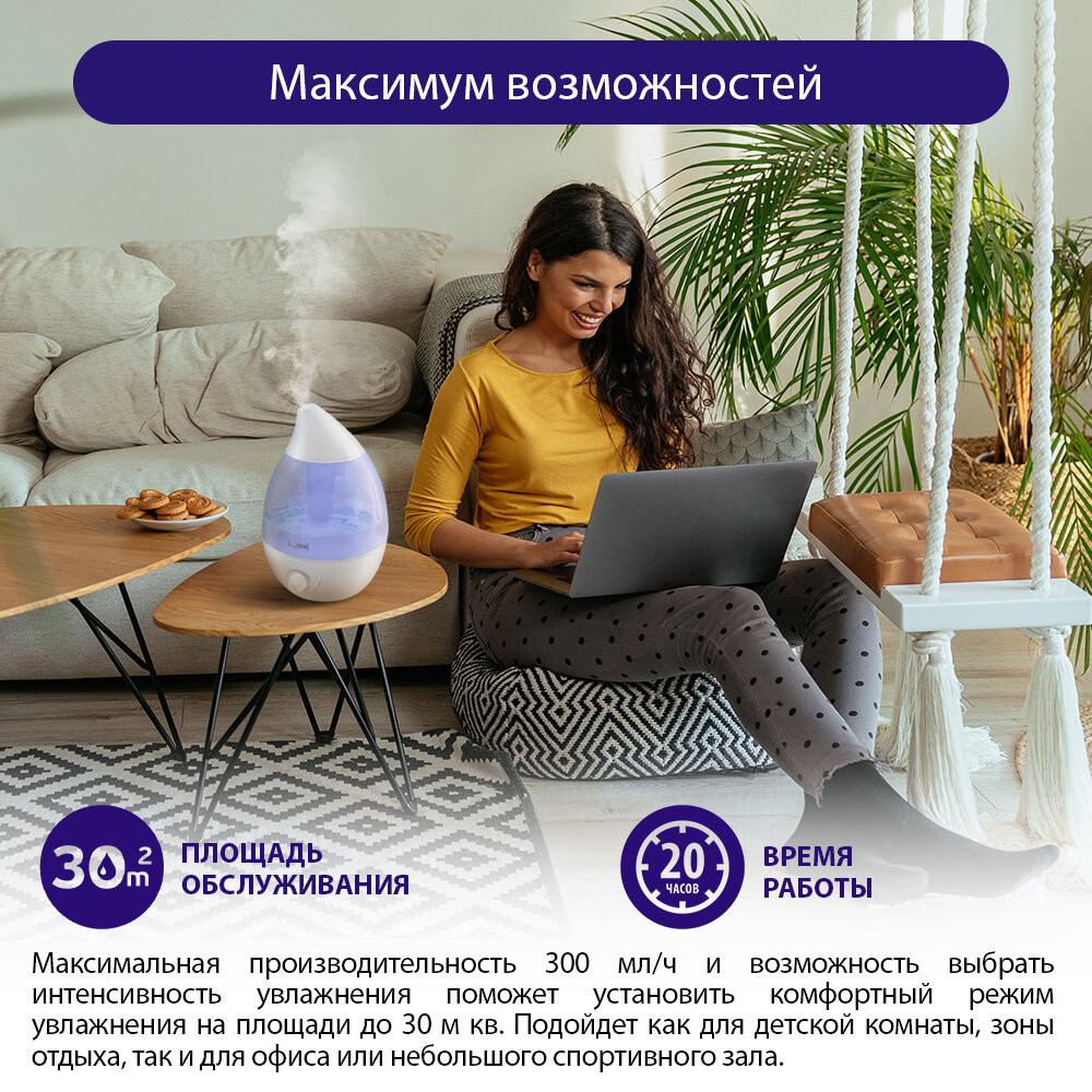 Увлажнитель ультразвуковой с подсветкой, 30 м2