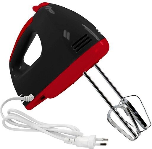 | Плюсы: | Дешевый, в наборе 2 типа венчиков, есть регулировка скорости. Нагревается не сильно. |