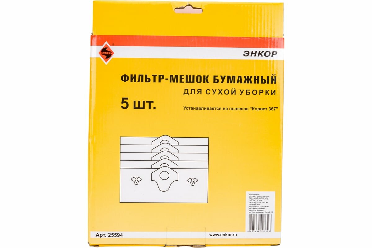Фильтр-мешок бумажный Энкор 5 шт для пылесоса Корвет 367