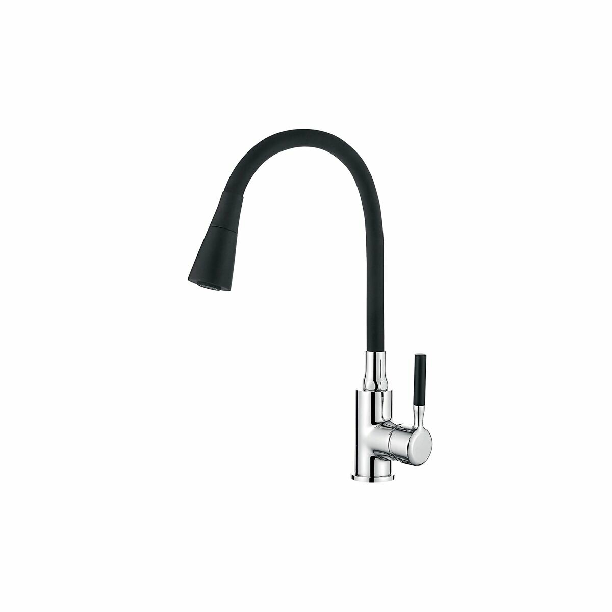 Смеситель для кухни LEDEME, силиконовый излив, черный+хром , L4199-2