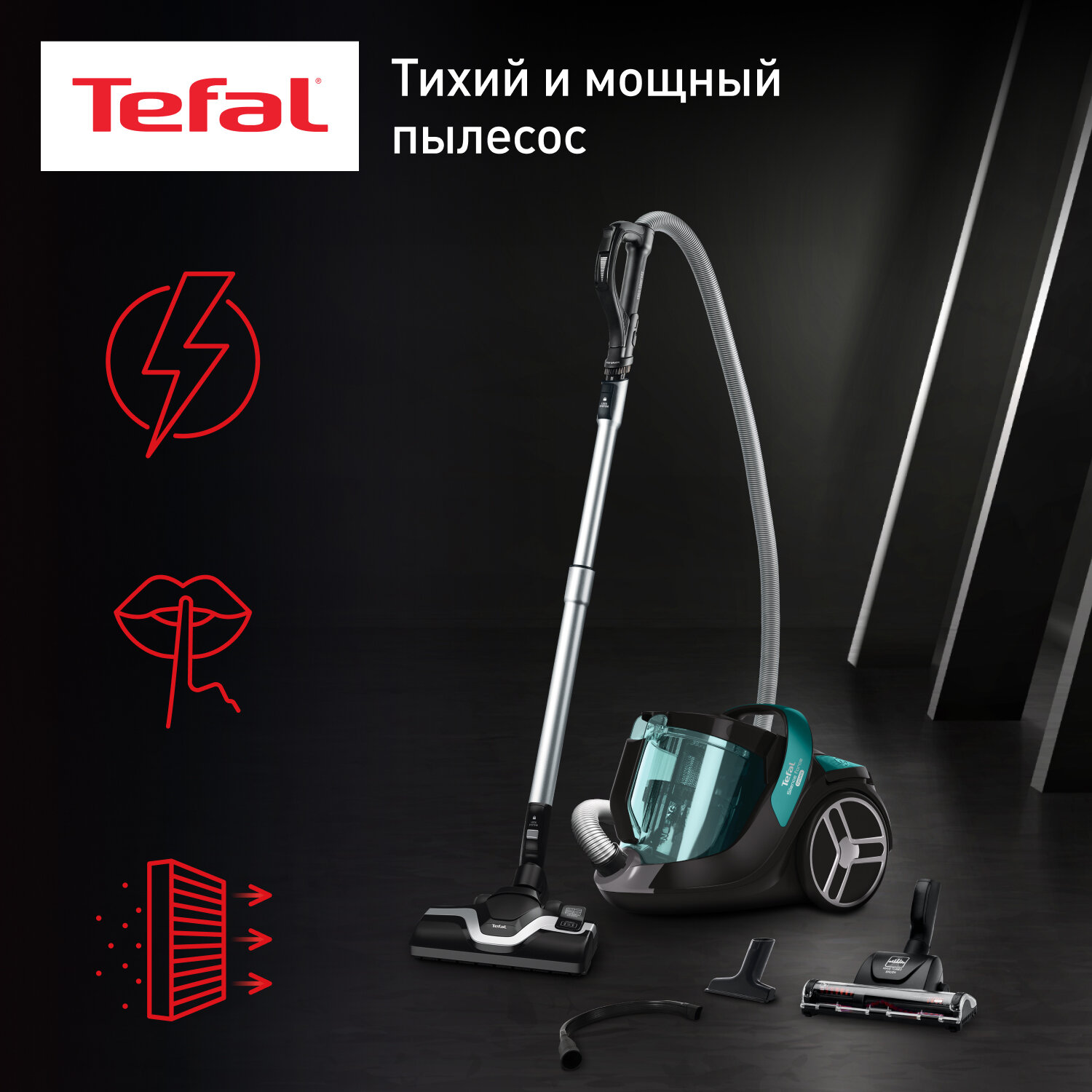 Пылесос с контейнером Tefal Silence Force Cyclonic TW7272EA интересное: