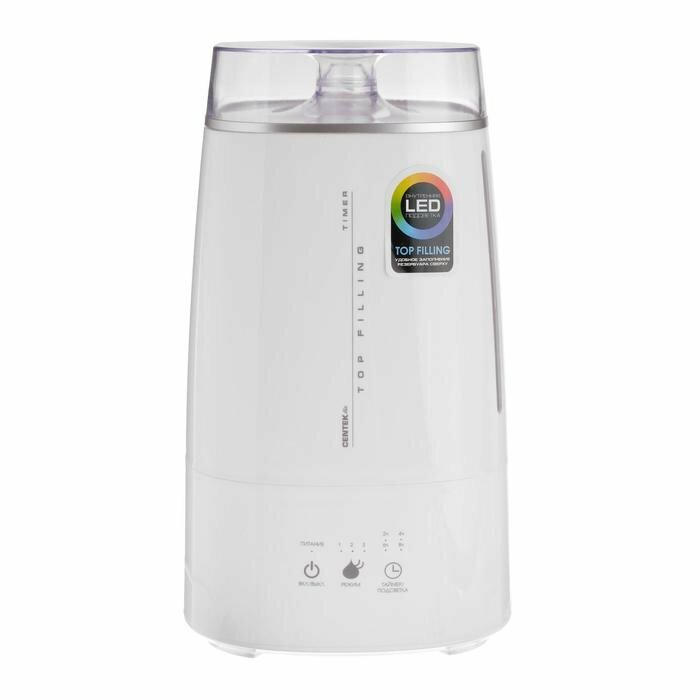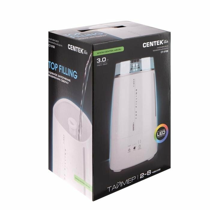 Увлажнитель воздуха Centek СТ-5108, ультразвуковой, 25 Вт, 3 л, 20 м2, белый Centek 5294934 .