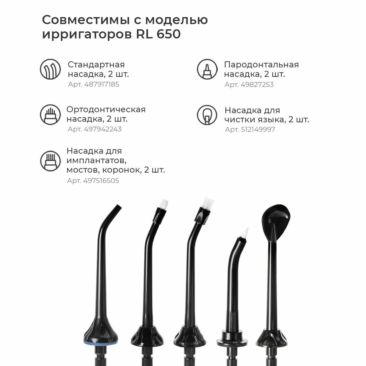 | Комплектация | нет основной блок ирригатора Revyline RL 650; нет резервуар для жидкости; нет станестьртная насадка – 2 шт.; нет кабель USB; нет чехол; нет инструкция по эксплуатации, гарантийный талон. |