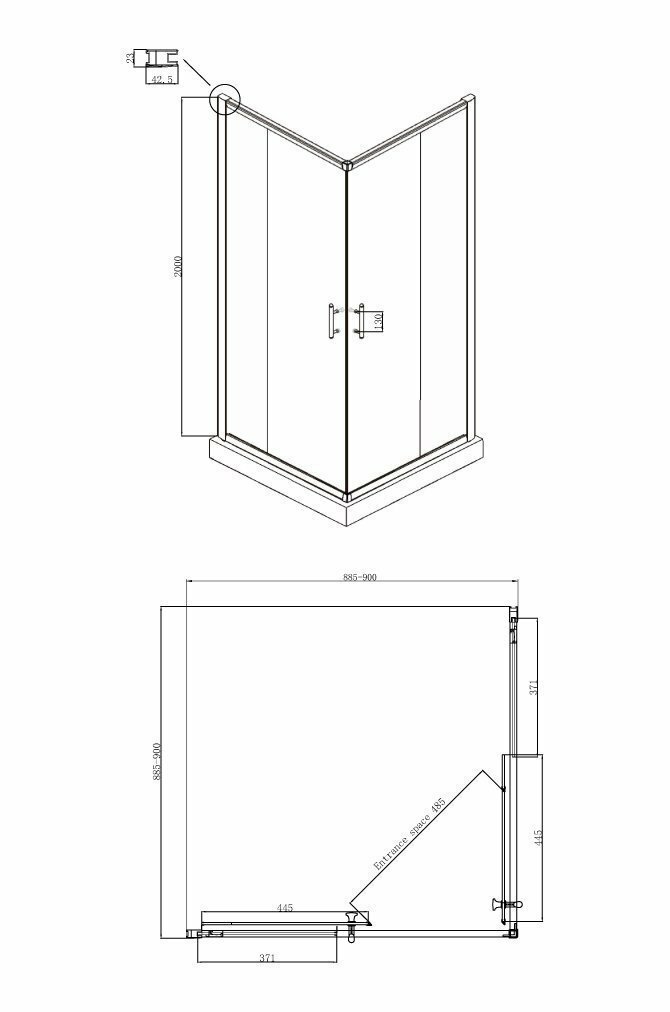 Душевое ограждение Ambassador Kingston 14011102 (900x900x2000), 1 место